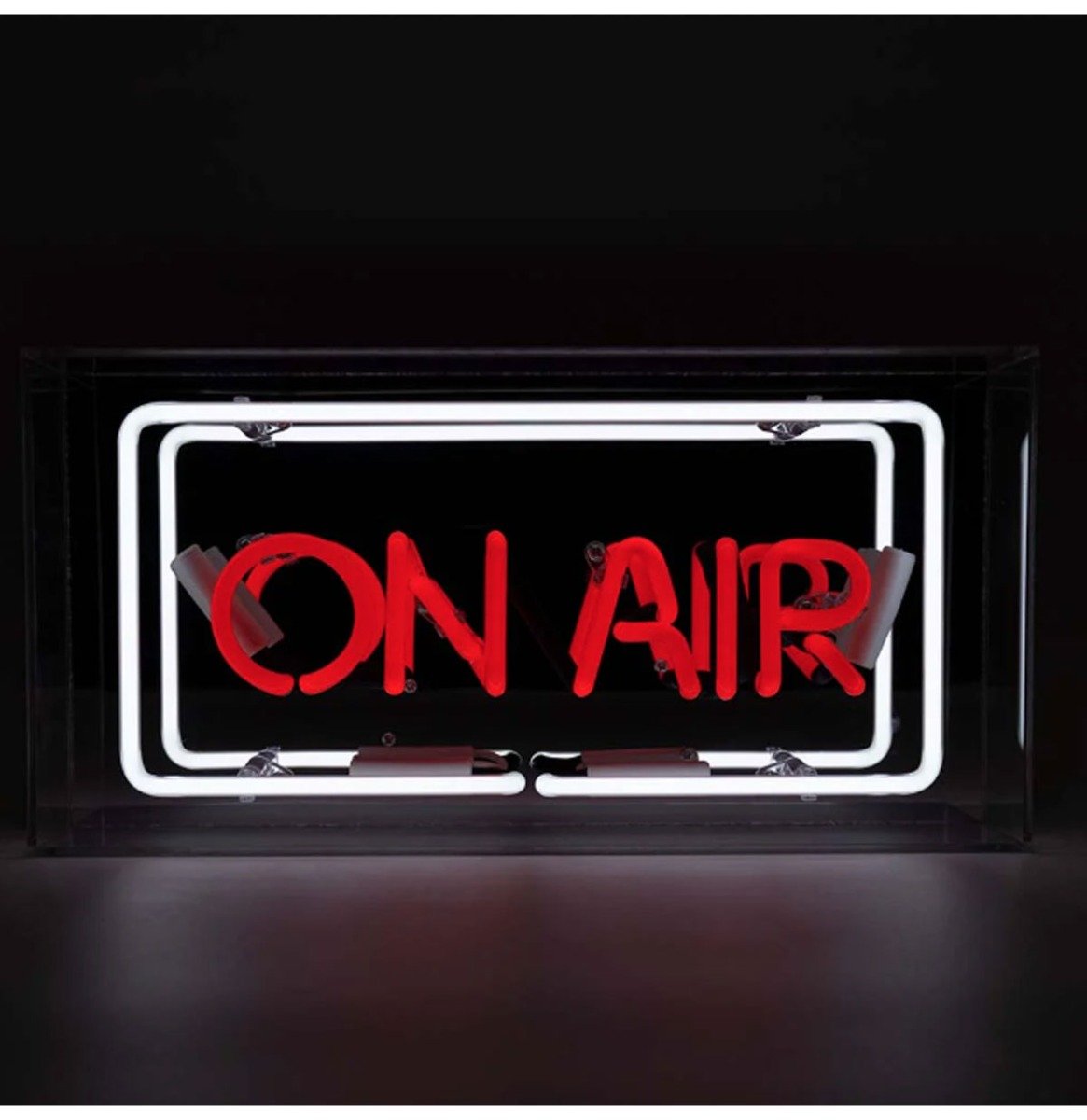 De 'On Air' glazen neon box sign brengt een coole, authentieke gloed in elke ruimte en is de perfecte toevoeging aan je huis, studio of kantoor. Met zijn speelse retrostijl is dit opvallende statementstuk een echte blikvanger die een vleugje vintage charme toevoegt en een levendige sfeer creëert. Of je nu de toon zet voor een creatieve sessie, een uitzending wilt nabootsen of gewoon een leuk accent aan je interieur wilt geven, deze lamp is een must-have. Ook ideaal als uniek cadeau!