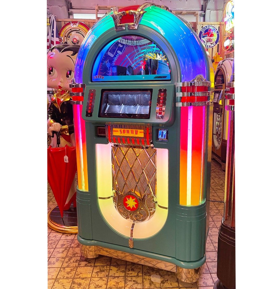 Sound Leisure Slim Line 80-CD Jukebox 1015 – Turquoise PLUS Bentley Grille